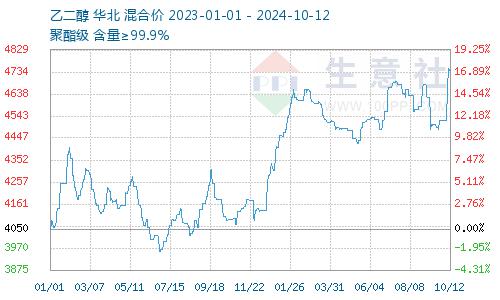 10月乙二醇价格上行。据生意社数据显示,截止10月12日,国内油制乙二醇均价为4741.67元/吨,较9月26日上涨4.79%。