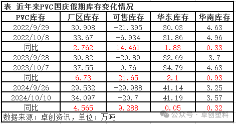 PVC粉:国庆节后行业库存增加增幅少于往年