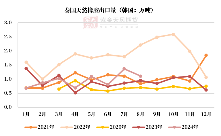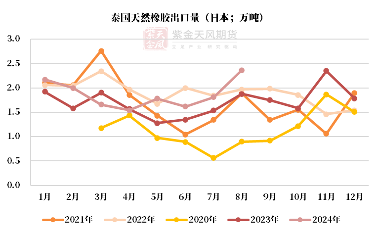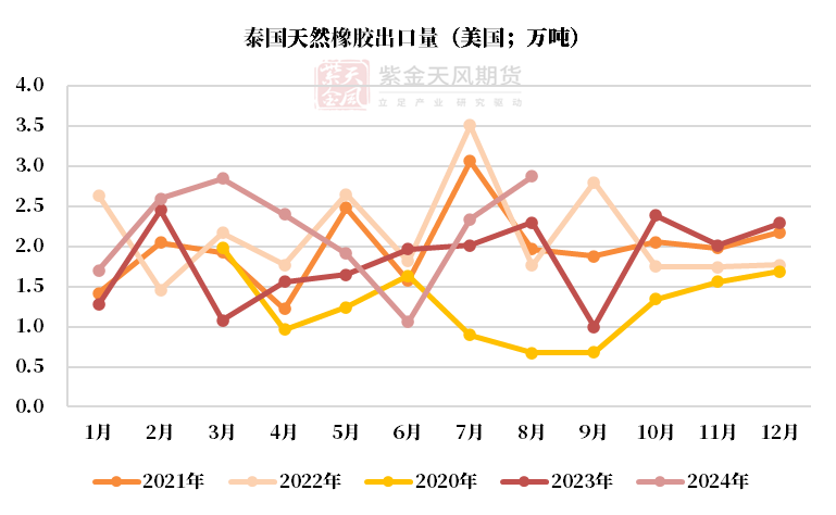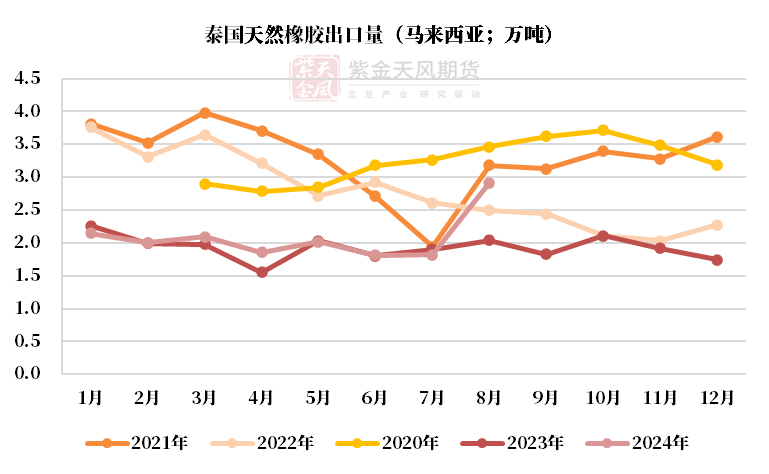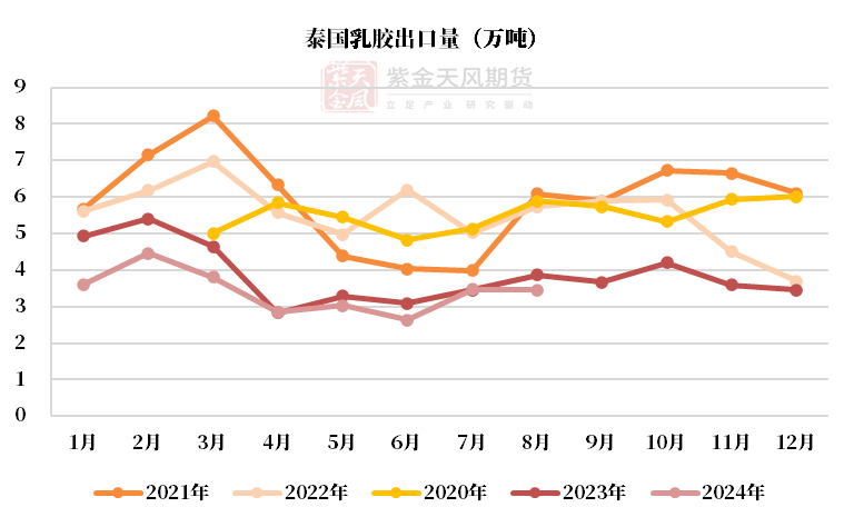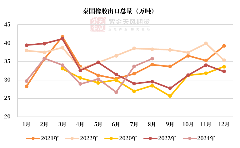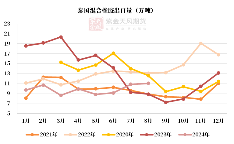 泰国供应:中性原料价格下跌,8月出口同比+21%,累计出口同比-8%。