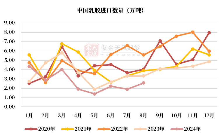 1-8月进口量同比-20%