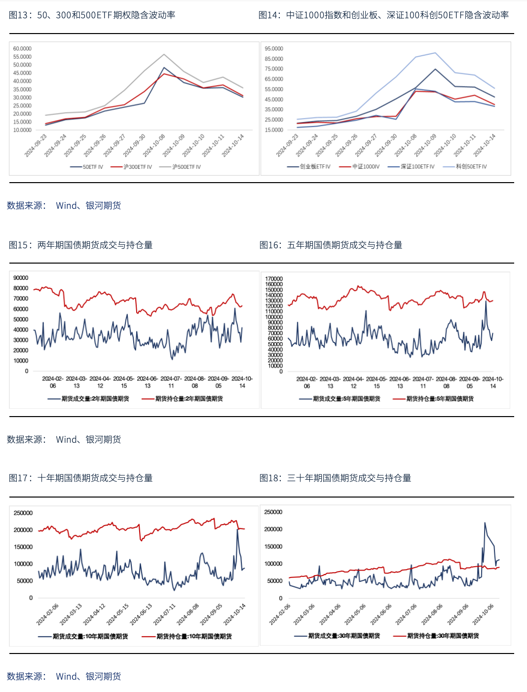 期权方面,50ETF期权成交量超200万张,其余期权品种成交量维持高位。隐波方面,周五盘中标的普跌,期权隐波日内由跌转涨,隐波与标的走势的相关性由正转负。多数标的价格企稳回升,隐波再次回落。隐波与标的走势负相关是否延续还需观察。近期标的日间实际波动和日内振幅偏高,预计各个品种隐波将维持高弹性。