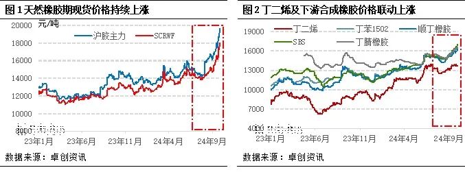 卓创资讯分析来看,天然橡胶、丁二烯及下游产业链能够屡创价格新高,是产业链各品种间相互助力的结果。一方面是天然橡胶期货价格的连续跳涨联动;另一方面是丁二烯供应持续紧俏未有改善的驱动。