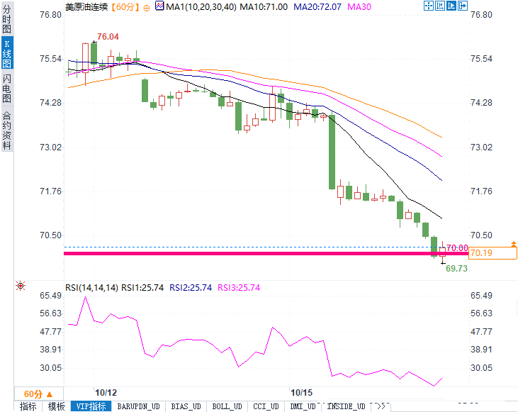 技术面分析:短期下行压力明显,关键阻力关注69美元关口