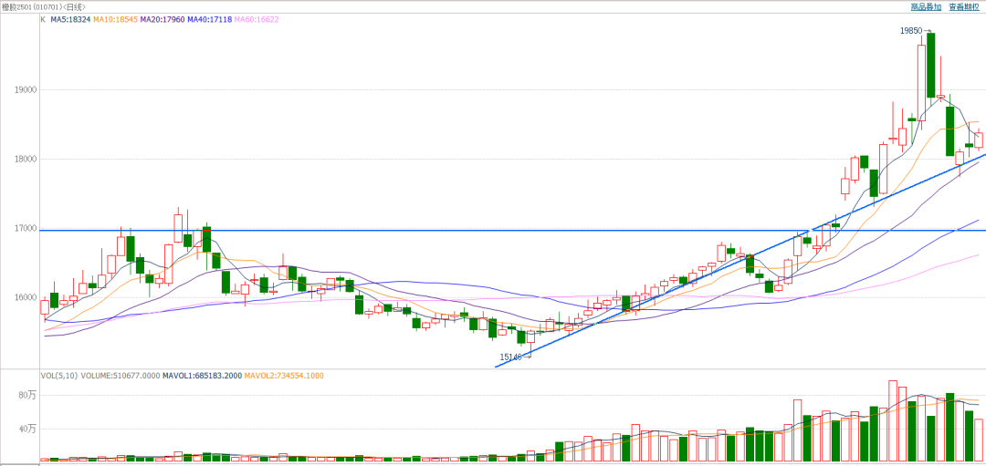 截至前一个交易日收盘,橡胶震荡上行,收小阳线。日k线大方向呈涨势,前期回调或已结束。