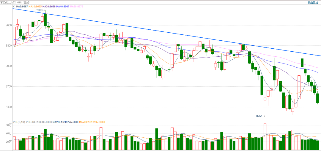 苯乙烯主力合约:连续回落
