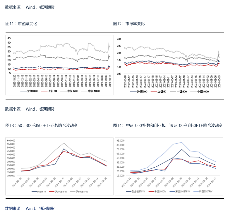 尽管当下多数期权隐波水平处于历史高点,但卖权策略入场仍需谨慎。一方面,标的日内/日间波动较大,对冲难度较高。同时由于ETF期权行权价数量有限,虚值期权(虚值认购)数量较少。导致在行情较大时,卖权仓位很容易由虚变实,除gamma、vega风险以外,流动性风险也相对显著。整体来看,当前市场环境下,波动率套利策略依然比较有优势。卖权策略预期四季度会有表现机会,但短期由于标的实际波动较高同时隐波弹性较大,使卖权策略对冲层面面临较大难度。目前10月合约临近到期,时间价值相对可观,可以轻仓参与卖近月波动的交易,但最好以结构性的头寸为宜,做好事前压力测试。