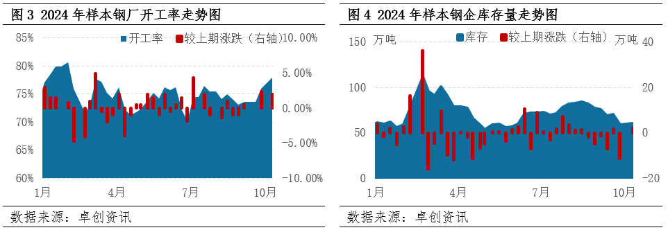 预计10月下半月供应端压力整体不大。10月以来产线开工率上升1.92个百分点达77.88%,产量同步增长,且国庆节期间交投活跃度下降、节后短期内成交低迷的情况致使库存消化慢,部分钢厂、贸易商库存略有上升。卓创资讯统计的最近一期(10月10日)数据来看,全国样本钢厂库存增长至60.45万吨,较9月底增加2.02万吨,增幅3.45%,仍旧处于年内偏低位置,因而整体供应端压力虽有上升但暂时不大。目前钢厂开工率已经达到了2月以来高位,且拉丝材利润偏高、钢厂生产意愿尚可,未来部分钢厂产线不排除存在复产的可能性,不过考虑当前库存处于年内偏低位,少部分资源缺货的情况尚在,且10月下半月需求尚存稳步小涨的可能性,预计短期内供应端压力不大。