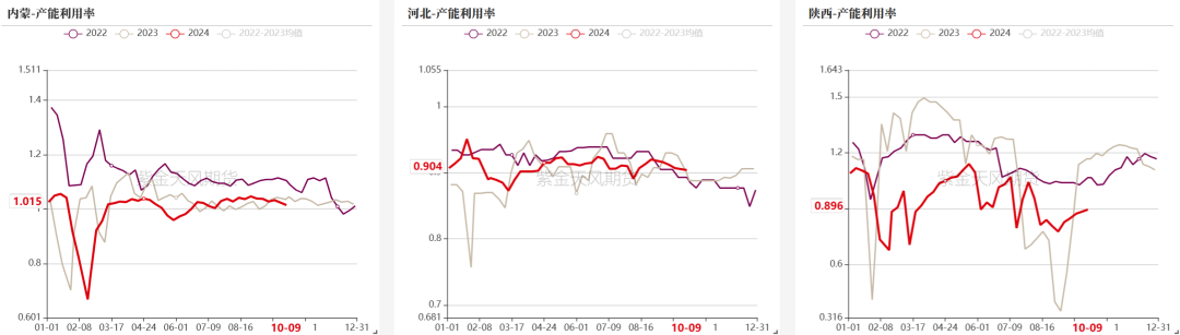 供应:中性偏空上周煤矿整体产能利用率小幅下跌周环比-1.35%至88.6%;国庆节前后有部分煤矿放假减产,总供应出现回落,但目前已在复产过程中;蒙煤节后通关有明显恢复,日通关回到千车附近水平。