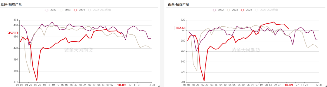 上周焦原煤周产量895.15万吨,周环比-13.71万吨;精煤周产量457万吨,周环比-8.89万吨,受假期影响供应收缩。
