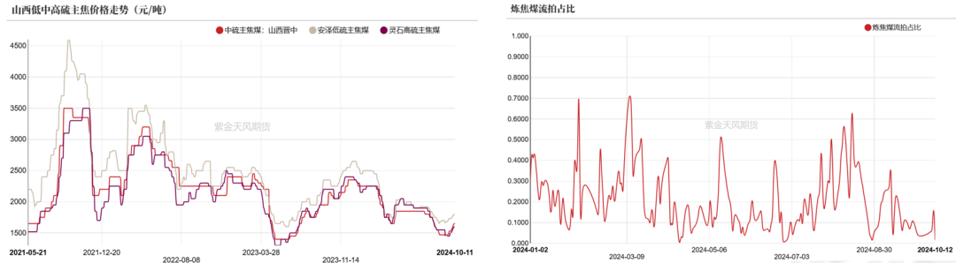需求:中性焦企在提涨周期对原料煤增加采购,但目前或已经是提涨周期尾声,仅保持刚需采购。