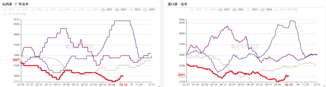 日照港准一级焦仓单价格约在2040元/吨左右,准一厂库仓单六轮提涨落地后在2020元/吨附近。