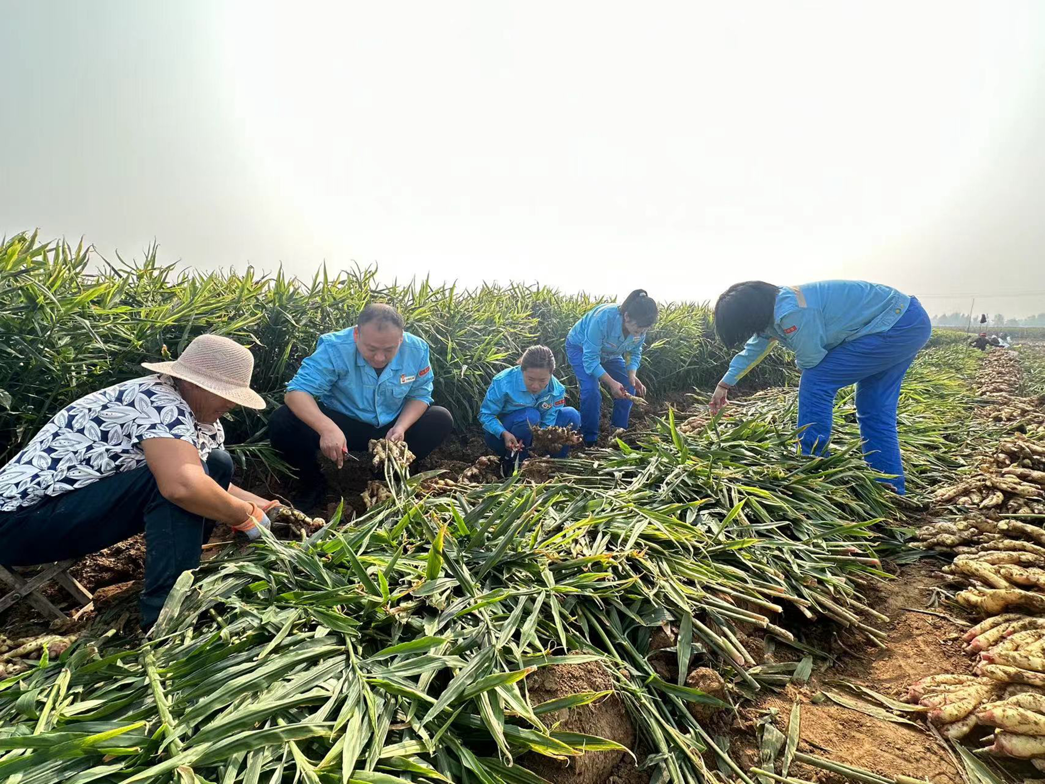 鲁网10月16日讯10月15日,中石油山东销售济宁分公司北部片区党支部组织党员志愿者队伍来到济宁市汶上县官庄村,开展“宝石花”助农丰收志愿服务活动,以实际行动助力乡村振兴、共赴“姜”来。