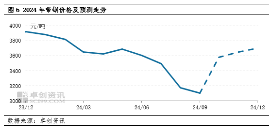 综合考虑,预计四季度带钢市场价格或震荡趋强,其中10月份带钢市场或震荡上涨,均价预计为3580元/吨,11-12月份带钢市场或延续震荡上涨态势,11月份均价预计为3650元/吨,12月份均价预计为3700元/吨。