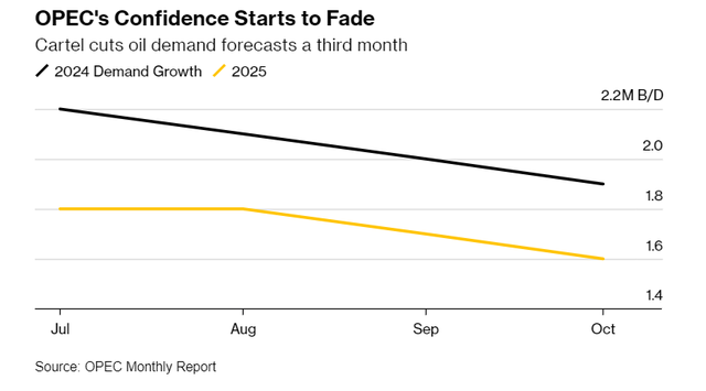 欧佩克连续第三个月下调了今明两年的石油需求增长预测,该组织姗姗来迟地认识到全球燃料消费放缓。
