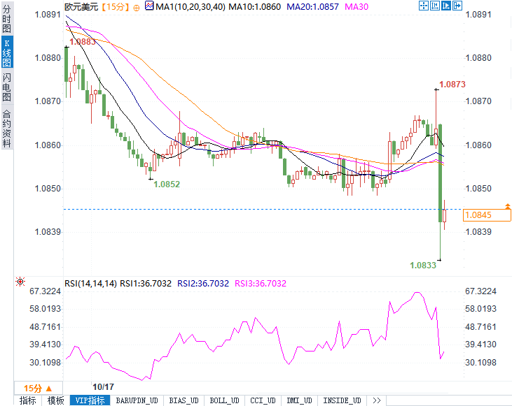 在外汇市场,欧元兑美元EUR/USD在ECB决议公布后短线走高逾10点后迅速回落,现报1.0846。分析师Justin Low表示,除了降息本身,ECB的政策沟通没有任何变化,因此市场对这份声明的反应相对平稳。交易员们预计,ECB在12月将再次降息25个基点,到明年6月还会有大约122个基点的降息。