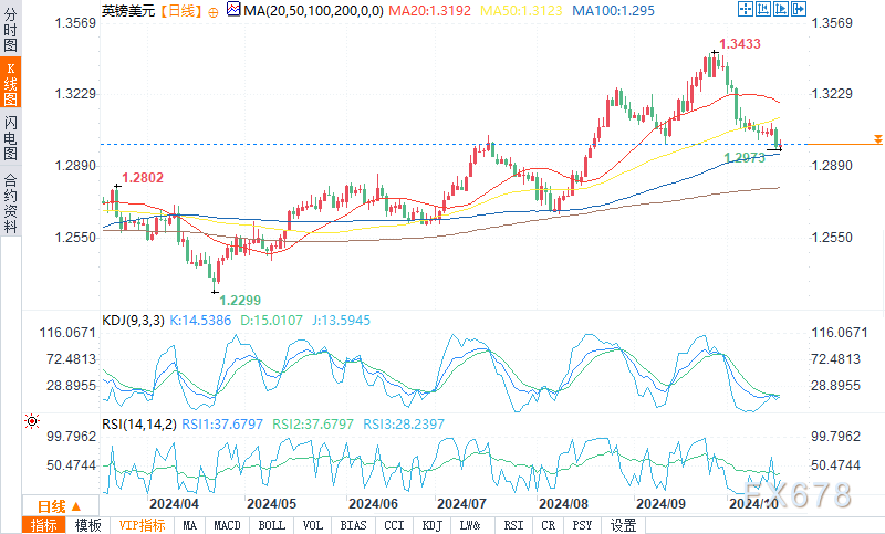 欧元/美元连续第四天下跌。今日,欧洲央行公布降息25个基点,存款利率降至3.25%。这是欧洲央行自6月份开始降息以来的第三次降息,也是欧洲央行自2013年以来首次连续降息。