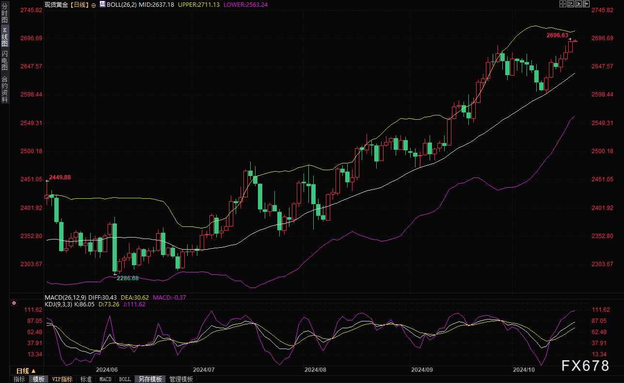 但需要提醒的是,美国10年期国债收益率也守住4%关口后重拾涨势,可能会令黄金多头有所顾忌,在顶破2700关口前,仍需提防短线多单获利了结的可能性。