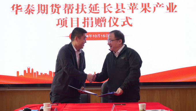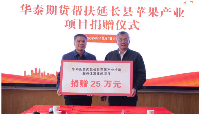 会上,胡智一行听取了延长县苹果产业监测服务体系项目情况介绍,并与农业农村局签订乡村全面振兴帮扶框架协议,华泰期货捐赠了25万元产业帮扶资金,助力当地苹果产业监测服务体系建设,为延长县重点产业提供服务和支持。