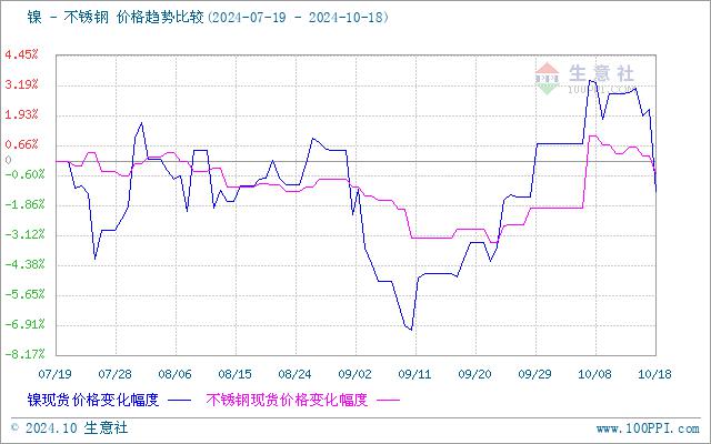 据生意社价差分析工具显示,镍和不锈钢价格基本相似,不锈钢价格随着镍价格涨跌,近期不锈钢价格小幅回落。