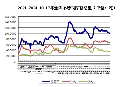 本周不锈钢库存合计101.95吨,较上周上涨0.89%,其中,冷轧库存上涨,热轧库存下跌。