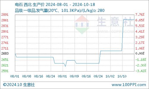 电石方面,9月电石行情仍偏弱,进入10月电石价格反弹,根据生意社监测的数据显示,10月以来电石跌涨幅为6.17%。整体来看周内电石市场走出反弹趋势,但本周价格并没有延续上行,且随着下游PVC重新陷入低迷,料电石价格也可能出现反复行情。