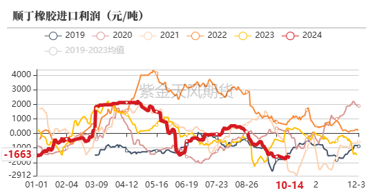 进口利润:10/1-10/15,丁二烯进口利润下滑。