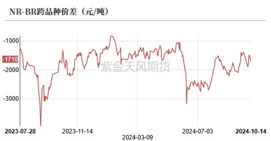 截至10月15日,NR-BR主力合约价差为-1710元/吨,周度变化80元/吨。