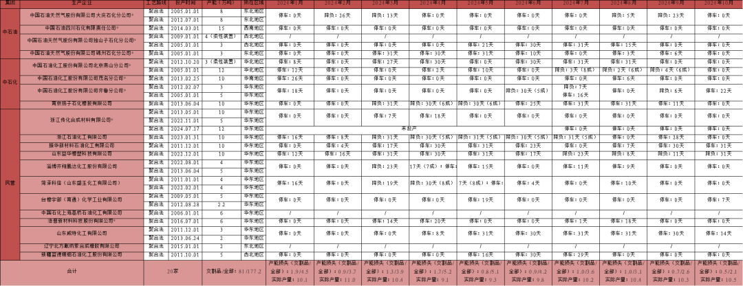 截止目前为止,10月检修导致的交割品损失预计约0.5万吨,全部产能损失约2.1万吨,实际产量稳步提升中。