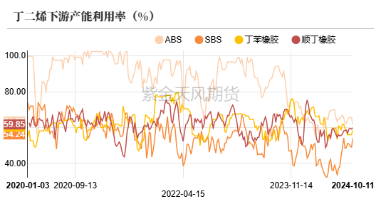 下游产能利用率:10/1-10/15,丁苯橡胶和SBS的产能利用率均有增加,顺丁橡胶和ABS的产能利用率均下滑。