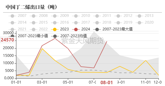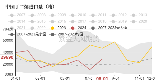 贸易方面:由于进口利润较好,8月丁二烯进口量环比增加150.3%,出口量环比增加252.9%。