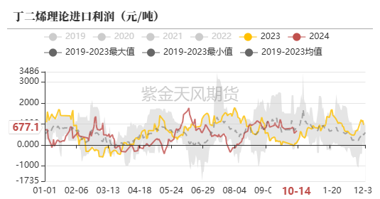 近期,进口利润打开,预计进口量继续增加,丁二烯整体上半年供应紧张的情况或有所缓解。