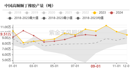 产量:9月,国内高顺顺丁橡胶的产量环比下降。