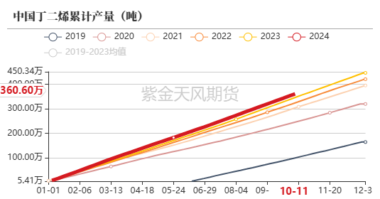 产量:由于今年产能较去年有所提升,10/1-10/11,丁二烯累计产量较去年小幅增加。