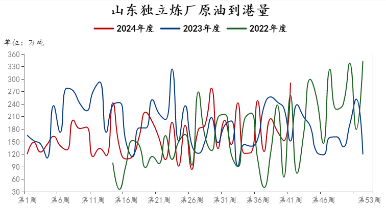 (2)供应端。年底前,欧佩克国家减产计划结束,原油逐步增产。截止10月10日,山东独立炼厂原油到港量为290.9万吨,环比上涨138.9万吨,涨幅91.38%,原油供应预期较为宽松。