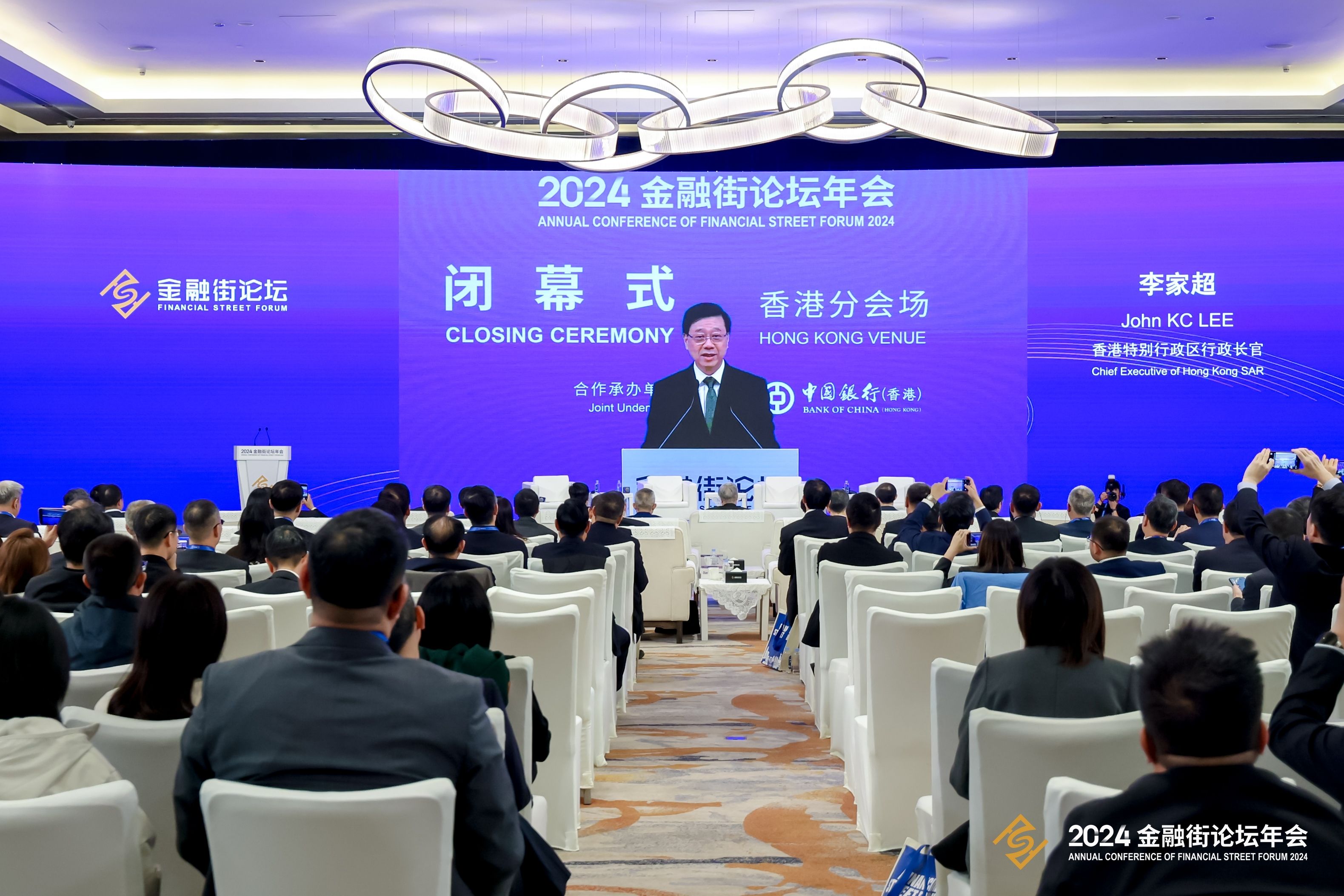 10月20日下午在北京举办的2024金融街论坛闭幕式上,香港特别行政区行政长官李家超在香港分会场远程做了特别致辞。