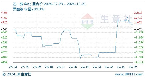 10月21日生意社乙二醇基准价为4718.33元/吨