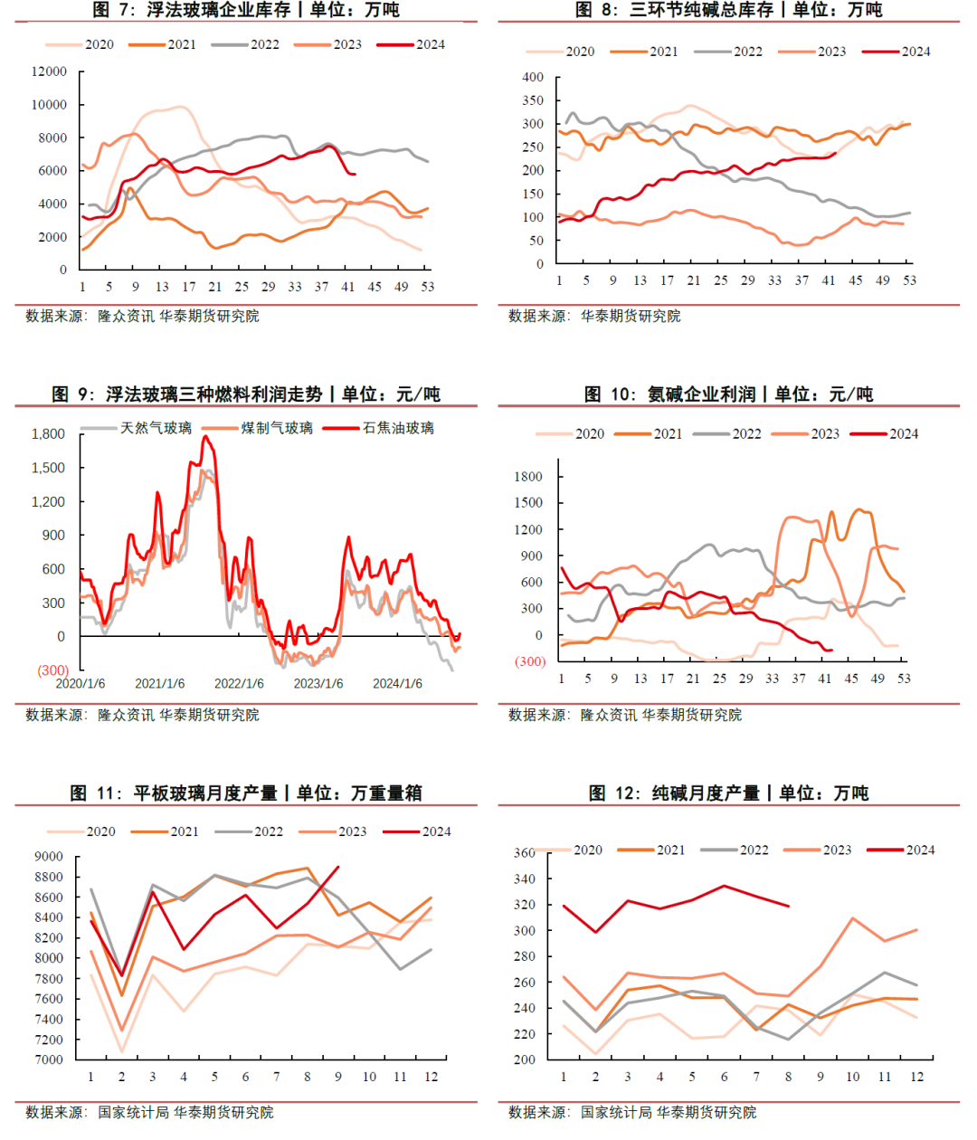 原文为2024年10月20日公开发布的《华泰期货玻璃纯碱周报20241020:市场情绪转向,盘面玻强碱弱》,限于篇幅本文择重简摘。
