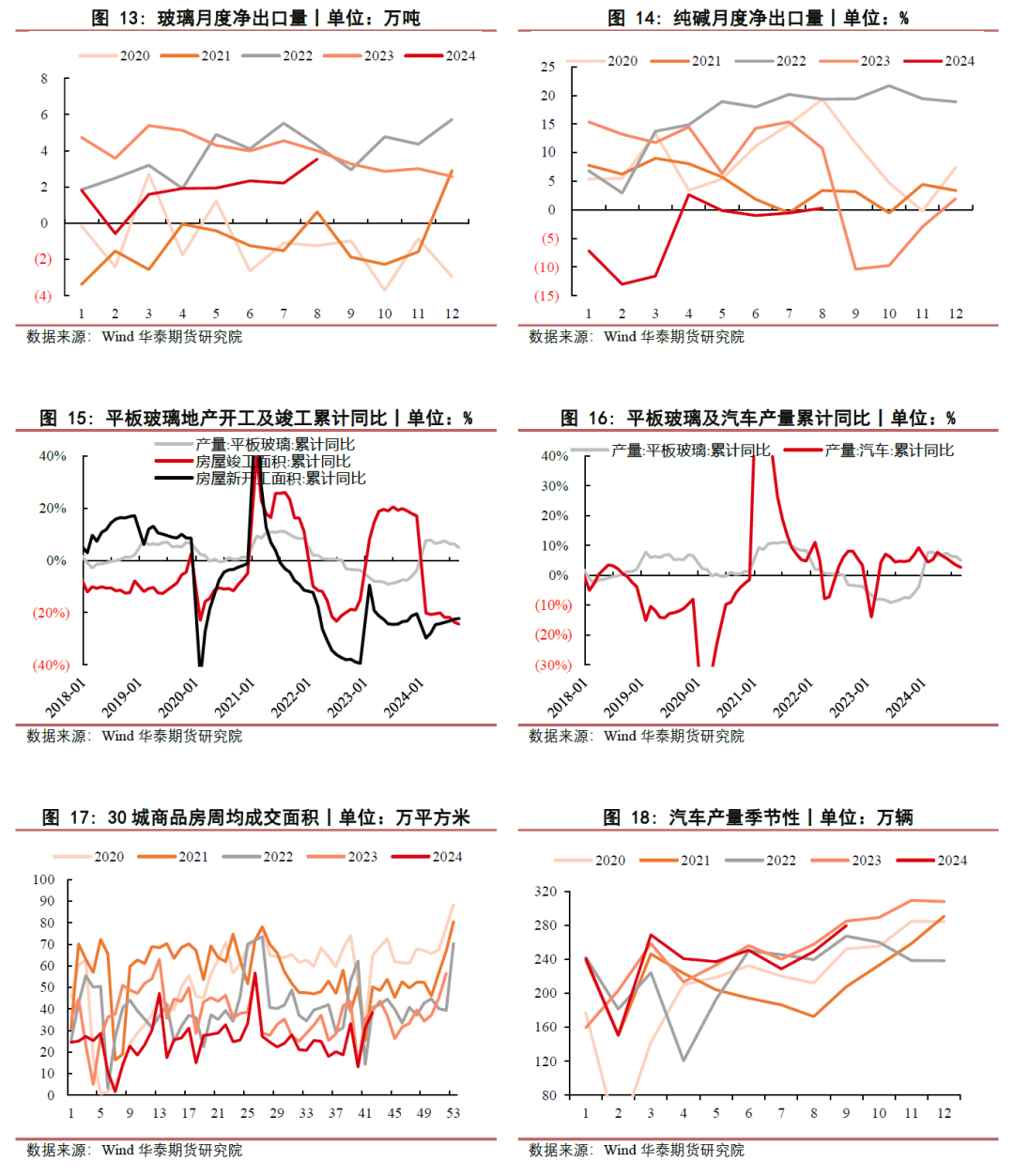 宏观数据情况、光伏产业投产、纯碱出口数据、浮法玻璃产线复产冷修情况等。