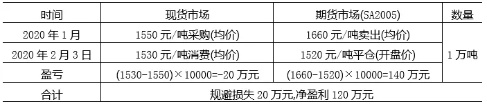 玻璃企业受生产工艺限制,窑炉一旦点火投产就需要不间断生产,因此玻璃企业往往会在节假日前囤积大量原料,以备过节期间使用。2020年春节前夕,某玻璃生产企业选择通过现货市场采购,增加原料纯碱库存1万吨,用以保障春节期间企业正常生产。但在囤积纯碱现货库存的同时,该企业考虑到2019年纯碱行业新增产能较多,供过于求格局可能导致市场库存持续增加,纯碱价格也将处于弱势。为避免企业囤积的纯碱原料大幅贬值,该企业同时选择在期货市场上对囤积的1万吨原料进行卖出套期保值。