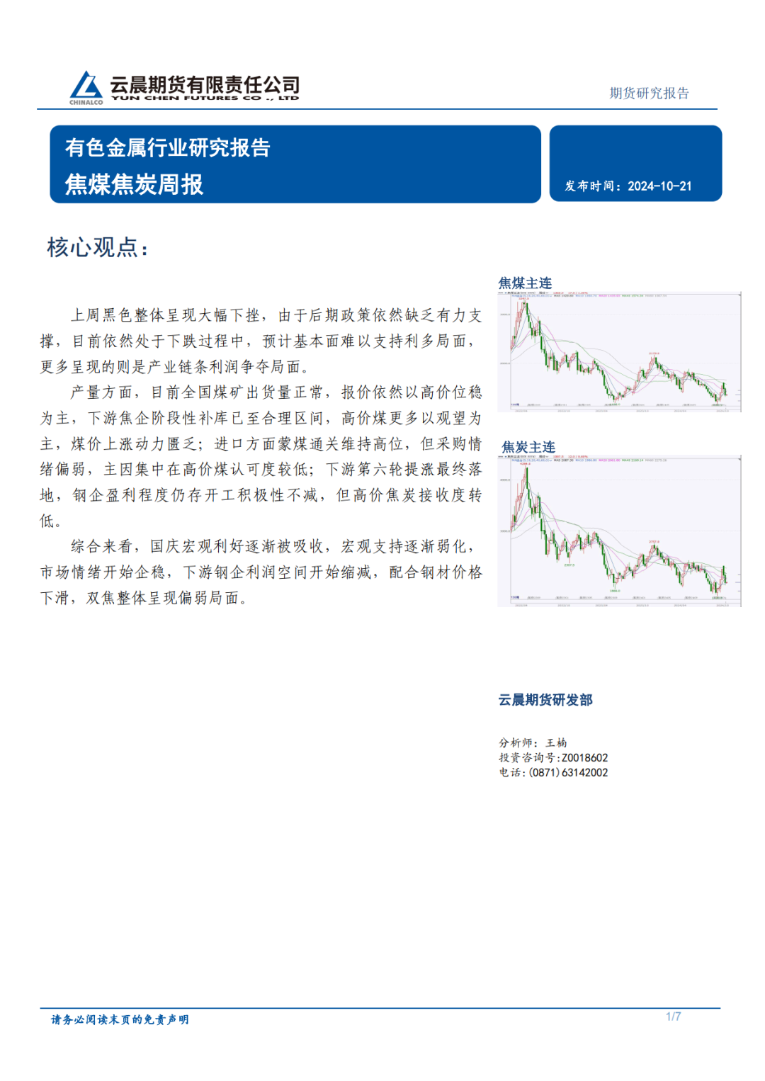 综合来看,国庆宏观利好逐渐被吸收,宏观支持逐渐弱化,市场情绪开始企稳,下游钢企利润空间开始缩减,配合钢材价格下滑,双焦整体呈现偏弱局面。