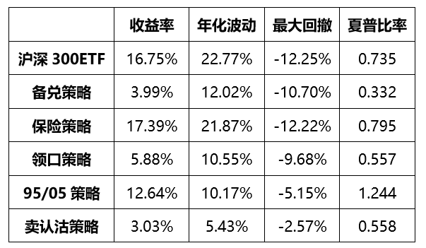 年初至今,现货逐步企稳,卖认沽策略表现较好。五个策略的具体表现如下: