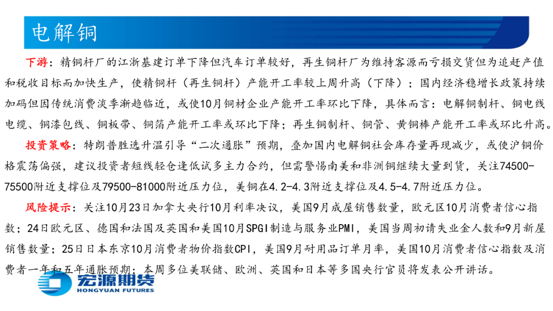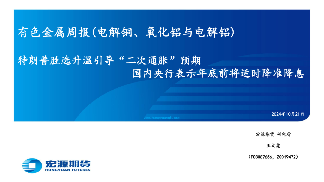 电解铜、氧化铝与电解铝|特朗普胜选升温引导“二次通胀”预期,国内央行表示年底前将适时降准降息