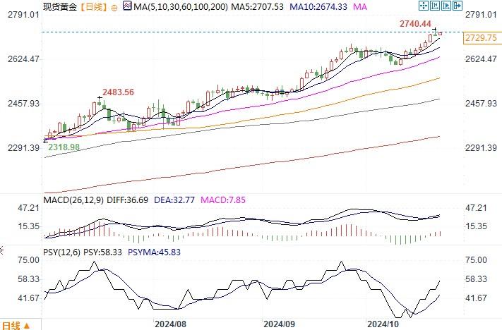 北京时间10月22日11:27现货黄金报2731.72美元/盎司。