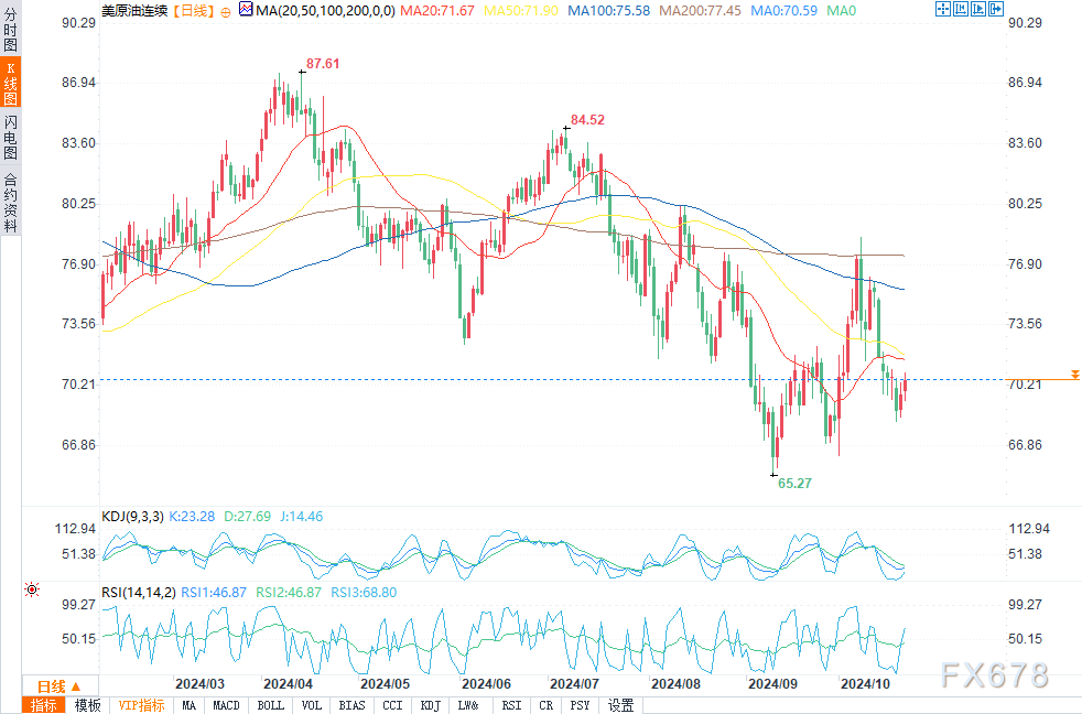 汇通财经APP讯——周二(10月22日)欧盘时段,WTI原油艰难守在70.00美元上方。随着美联储大幅降息的可能性越来越小,经济增长和能源需求可能会被扼杀,这意味着未来几个月的石油前景黯淡。