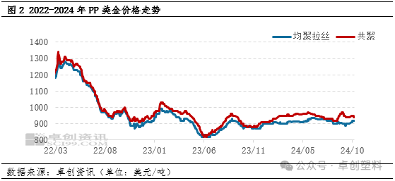 国庆期间由于中东局势持续升级,地缘再次主导油价,导致油价连续上涨,布伦特涨至80美元位置上方。因此在海外能源价格走高、PP成本支撑走强的基础上,外商报盘调涨,叠加国内货币、财政等政策的不断刺激,国内美金贸易商基于成本和预期的考虑,同样上调报盘。截至目前,均聚美金价格在900-920美元/吨,共聚美金价格在900-940美元/吨,环比上月涨幅在5-10美元/吨。国内供应宽裕,且下游工厂消耗前期库存为主,多数买家对美金采购意愿不高。