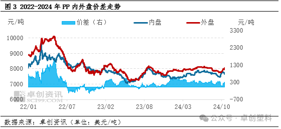 国内PP价格年内多数时间处于全球洼地,而近期外商报盘小幅抬升,内需亦难有好转的情况下,进口窗口处于关闭状态,预计短期进口将维持低位。