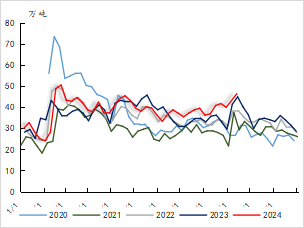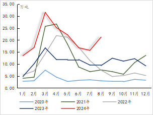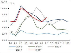 今年以来进口维持偏低的水平运行,主要在于内需偏弱,内外盘价差倒挂时间较多,且海运费高企,运力紧张,因此进口量较低。四季度来看,前述因素均有不同程度的弱化,一是国内价格有所反弹,进口利润修复,且运力紧张的问题也在缓解,预计四季度进口量或逐渐增加。