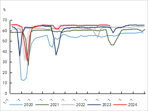 图13:PE下游开工率(平均) | 图14:PP下游开工率(平均) |