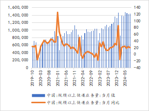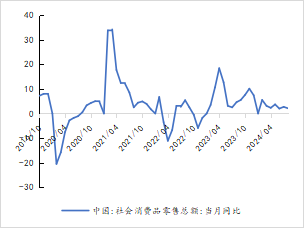 图21:中国:规模以上快递业务量 | 图22:中国:社会消费品零售总额:当月同比 |
