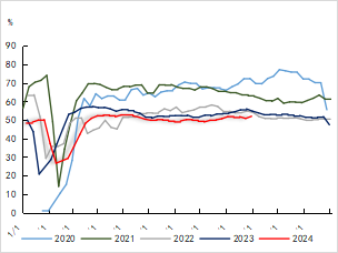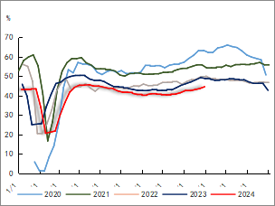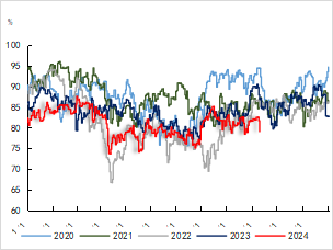 四季度来看,下游开工率或呈现前高后低的趋势,金九银十尚未结束,传统下游的需求高点仍然没有到达,因此需求预计仍有提升空间。此外,9月份以来,货币政策、金融政策逐渐推出,后续仍有财政政策等待出台,政策端暖风频吹也刺激市场上的投机需求涌现。不过,随着10月后旺季的逐渐结束,下游开工率预计将会达到年内高点后整体回落。